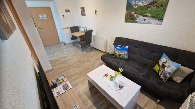 Vorraum, Schlafzimmer, Bad, Küche und Wohnzimmer.